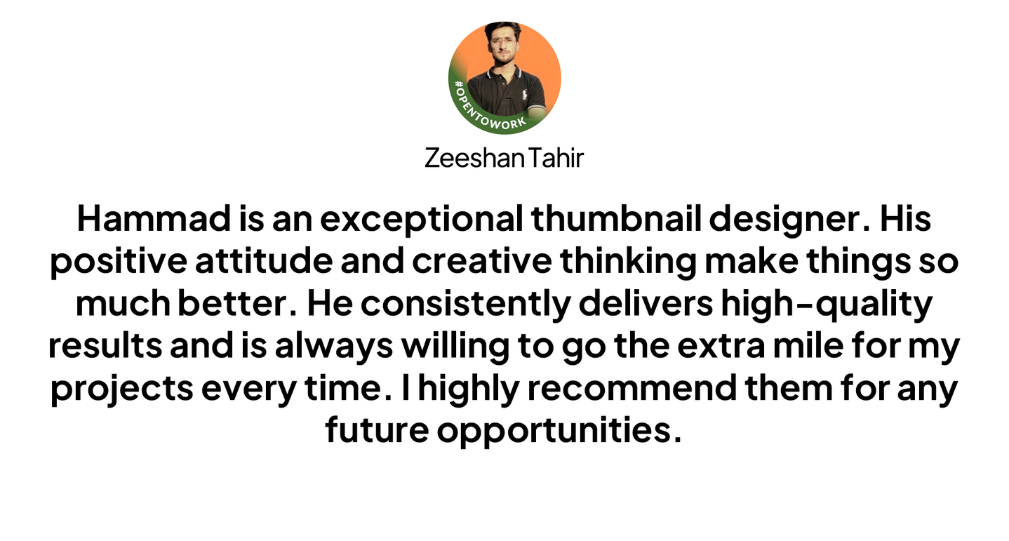 I'm a professional YouTube thumbnail designer with 2+ years of experience and 1000+ thumbnails delivered with multiple satisfied clients across YouTube. I worked with top creators and agencies worldwide. I'm specialize in bold, custom designs that boost clicks and engagement across finance, business, B2B, crypto, talking head, and many more.